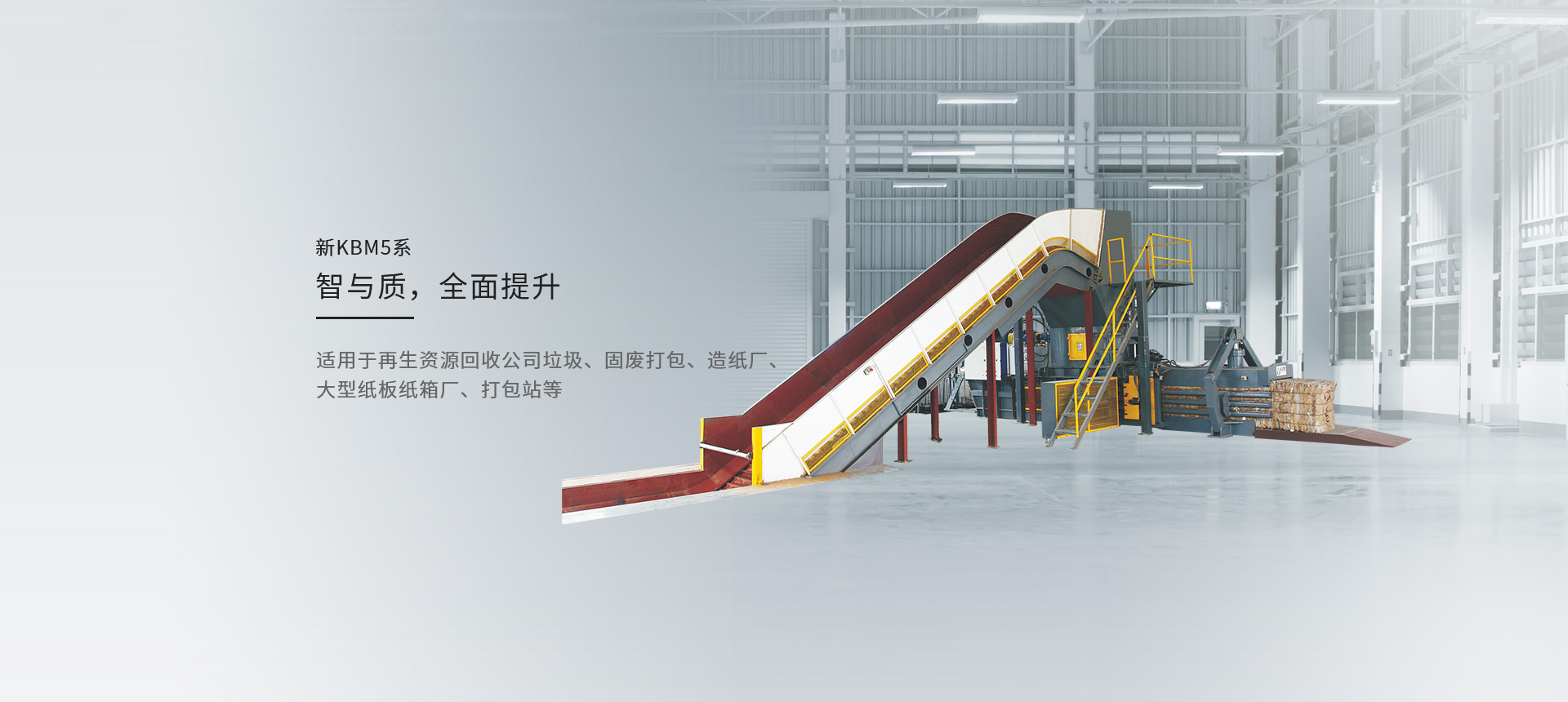 KBM為造紙、紙板紙箱、包裝印刷、再生資源和大型商超5大領(lǐng)域客戶提供智能高效、有競爭力的回收打包設(shè)備,以及廢料物料輸送、收集、除塵、分揀等解決方案與服務(wù)。與生態(tài)伙伴開放合作,堅(jiān)持圍繞客戶需求創(chuàng)新以及加大研發(fā)投入超越性的創(chuàng)新,持續(xù)為客戶創(chuàng)造價(jià)值,助力環(huán)保產(chǎn)業(yè)升級,促進(jìn)社會可持續(xù)發(fā)展。